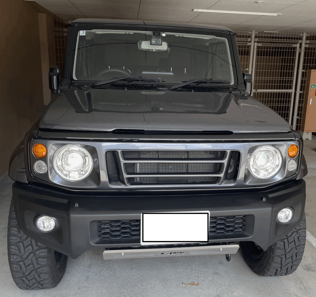 こんな感じで buff k-edition カーボンネット ーー 一味違うジムニーになりますよ buff k-edition オーバーフェンダー ーー 肩パットが入った感じ buff k-edition G.D.Pグリル ーー 少し怖い顔になりま... -